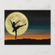 Dramatic and inspiring image features ballet dancer silhouette against full moon and night sky landscape