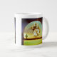 The frosted glass adds a touch of elegance, allowing the moonlight to reflect off its surface, creating a beautiful dance of light and shadows. As you gaze at the mug, you can almost envision the surrealistic scene unfolding before your eyes, with clowns leaping gracefully under the moon's gentle glow.