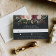 Designed to coordinate with our Moonlight Garden watercolor floral wedding collection, this elegant botanical RSVP card features a spray of watercolor painted mum and rose flowers in rich autumn shades of marsala, burgundy plum, blush pink, and cream, topping your desired response date and custom accept and decline wording. An elegant wedding response card in chic off-black for fall or winter weddings. Allow guests to indicate their entree preference ahead of time with a custom field for your meal choices.