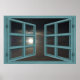 Moonlight Green Wood 6 Pane Open Window Poster