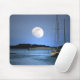 The moon goes up in the quiet harbor with sailboats on their moorings. A beautiful, nautical scene.