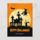 Moonlight Haunted House in Graveyard - Halloween Postcard