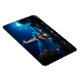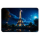 This magnet is shown with a photo art print of the famous Eiffel tower in Paris.