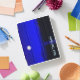 I was super excited when I got my cover in. It is attached by a magnet across the edge. I don’t think it will be very protective but it is very cute. I’m going to keep my iPad in a sleeve and use this face cover while I have it out. It folds to create a tilt for better viewing and to keep the iPad at a slight angle for typing. The colors are bright and it is fun. I’ve really enjoyed it. The personalization looks like amazing. It is the same color as the picture and is the same brightness. Well done! Very nice.