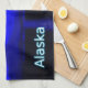 Moonrise in the Inside Passage off the coat of Alaska. Mountains in the distance and a fishing boat heads north. Text reading "Alaska" appears in glowing blue and white.