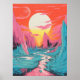 This exquisite art captures a serene pink landscape, where a winding road invites viewers to explore its tranquil beauty. The soft hues of pink create a dreamlike atmosphere, while the luminous moon casts a gentle glow over the scene.