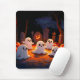 A group of adorable ghosts sitting together on the ground, sharing spooky horror stories. Their playful expressions and eerie atmosphere create a fun, lighthearted Halloween scene.