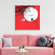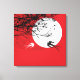 Moonlight Swallows Silhouette Red Wrapped Canvas Print