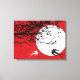 Moonlight Swallows Silhouette Red Wrapped Canvas Print