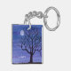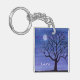 A watercolor painting of a lovely tree silhouetted under a full moon adorns this customizable keychain!
