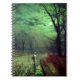 Notebook featuring John Atkinson Grimshaw’s painting A Moonlit Evening (1880). A haunting moon fills Victorian England’s night sky as a woman stands in a street lined with trees. In front of her is a lighted building. A great gift for fans of Romanticism and Victorian England.