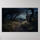 Moonlight walk on winding path through woods poster