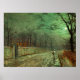Poster featuring John Atkinson Grimshaw’s painting A Moonlit Evening (1880). A haunting moon fills Victorian England’s night sky as a woman stands in a street lined with trees. In front of her is a lighted building. A great gift for fans of Romanticism and Victorian England.