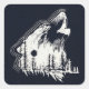 Moonlight Winter Wolf Pine Tree Forest Square Sticker