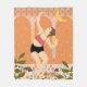 Moonlit Dance captures the graceful motion of a figure swaying beneath a crescent moon and starry sky, set against a warm, patterned backdrop. The vibrant colors and serene vibe create a perfect blend of movement and tranquility.