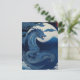 Atmospheric postcard featuring a majestic blue dragon rising beneath the moon near Mount Fuji in a traditional Japanese-inspired composition.