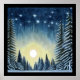 A stunning moonlit snowscape. The stark white blanket of snow glistens under the soft light of the moon, while a canopy of stars twinkles overhead. This design captures the beauty and stillness of a quiet winter's night.