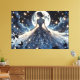 This enchanting visual art captures a serene fairy princess standing beneath a luminous full moon, surrounded by drifting golden fireflies and soft midnight clouds. Her flowing celestial gown cascades outward in intricate floral lace patterns, blending deep navy, silver-blue, and soft ivory tones into a dreamy, ethereal palette. The delicate glow of starlight and fluttering butterflies creates a whimsical, storybook atmosphere that feels both romantic and otherworldly. With its cottagecore-meets-fantasy aesthetic, this design evokes quiet magic, feminine strength, and moonlit wonder. The composition balances dramatic night sky contrast with soft, glowing highlights, giving it a boho fairytale elegance that feels timeless yet on-trend. Perfect for lovers of celestial art, dreamy fantasy, and graceful feminine silhouettes, this artwork invites you into a peaceful, star-kissed realm of imagination and light. AI generated artwork.