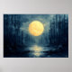 Moonlit Forest Reflection – Abstract Blue & Gold Poster