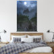 This canvas print pairs well with décor styles such as rustic, forest-themed, medieval, Nordic, gothic, or cottage-core interiors. The colour palette leans toward cool blues, deep greens, and soft grays, enhanced by the luminous white moonlight. These tones create a calming atmosphere while maintaining the dramatic intensity that makes fantasy art compelling. Whether placed in a dimly lit room or a softly illuminated area, the piece retains its impact thanks to the striking contrast and strong composition.