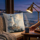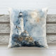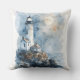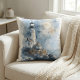 Moonlit Lighthouse on Rocky Coastline Throw Pillow
