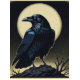 A solitary raven stands poised against a luminous full moon, its sharp gaze and bold silhouette capturing a moment of quiet intensity. The scene evokes mystery and watchfulness, blending darkness and light into a striking emblem of solitude, strength, and timeless symbolism.