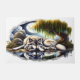 Beneath a luminous full moon, a majestic wolf lies in repose under the shelter of a weeping willow. The scene is mirrored perfectly in the glassy surface of a tranquil lake, inviting a moment of reflection and peace in the embrace of the night.