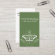 Elegant business cards for psychotherapy studio, energy healing, life guidance, yoga or massage studios, massage therapy, meditation teacher, natural health counselor, spas or wellness professionals feature a white illustration of a two opened hands creating energy with a spiritual moth a third eye moon and stars in solid moss green color background.