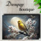 Transform everyday furniture into poetic showcases with this ethereal yellow warbler design. This version offers a more dramatic moonlit atmosphere than its companion pieces, with the bird's brilliant yellow plumage creating a striking focal point against the misty gray-blue background. The cherry blossoms appear almost luminescent in the moonlight, their delicate petals rendered with crystalline clarity. The composition creates a perfect balance between the bright, hopeful presence of the bird and the dreamy, contemplative mood of twilight.