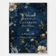 This enchanting celestial wedding design blends a deep midnight sky with glowing golden stars, soft moonlight, and richly detailed florals for a strikingly romantic aesthetic. The painted night sky creates a magical atmosphere, while the gold botanical accents add luxurious warmth and depth. Perfect for couples seeking an elegant celestial theme with a touch of whimsy and artful sophistication.
