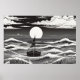 Moonlit Voyage Nautical Serenade Black and White Poster