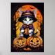 Unleash the adorable spirit of Halloween with this charming poster. A cute kitty, with eyes that gleam like crescent moons, perches atop intricately carved pumpkins. Its whiskers twitch with curiosity as the moonlit night casts a magical glow. This poster is a delightful fusion of cuteness and spookiness, capturing the whimsical essence of Halloween where the cute kitty and the carved pumpkins unite in a scene of playful enchantment.