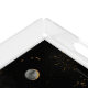 Gold and silver moons and constellations of stars and leaves swirl across a midnight black sky. A moody dark design as a vanity tray to hold perfumes or make-up, or use as a serving tray for refreshments at a tarot card or astrology party.