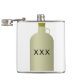Moonshine used to be all you could get. Now you can get it again with this great design of a moonshine jug. This moonshine jug has xxx written on the site and has a cork in the top. There is a little handle on the side. This moonshine jug design looks great on this flask. Perfect for yourself or as a gift