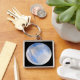 Large square premium metal keychain with an image of an iridescent moonstone on black. See the entire Goddess Keychain collection in the PARTY FAVORS section.