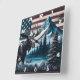 Moose Against Mountain and Flag Background Square Wall Clock