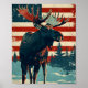 "Capture the essence of rustic Americana with our Vintage Moose Postcard, where wilderness meets patriotism. A majestic moose takes center stage against the backdrop of the American flag, creating a picturesque scene that embodies the spirit of the great outdoors and national pride. This carefully crafted postcard invites you to send warm regards or keep as a cherished memento, celebrating the harmony of nature and the enduring symbol of the American wilderness."