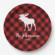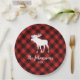 Moose and Buffalo Red and Black Plaid Christmas Paper Plates