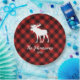 A modern Christmas design, features a buffalo red and black plaid pattern with a lovely white moose.