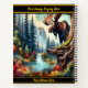 A majestic moose stands beside a serene forest wonderland, gazing at a colorful waterfall cascading into a tranquil lake surrounded by autumn foliage. Nature's beauty radiates.