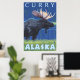 Moose at Night - Curry, Alaska Poster