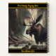 A magnificent moose gazes into the distance beside a serene forest stream, surrounded by lush greenery and dappled sunlight.