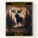 A majestic moose stands proudly near a calm river, surrounded by towering trees and gentle birds, embodying the serenity of nature.