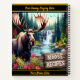 A majestic moose stands near a tranquil waterfall, framed by vibrant autumn leaves and tall evergreen trees, embodying the serene beauty of nature's wilderness.