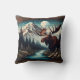 Moose by Mountain Stream Under Full Moon Throw Pillow