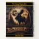 A beautifully detailed carving of a moose stands proudly, surrounded by trees and mountains, showcasing nature's artistry and craftsmanship.