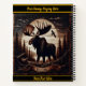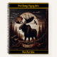 Moose carving on dark wood in a forest notebook