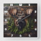 Moose Head Wall Mount With Pine Foliage Square Wall Clock