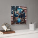 Moose in Front of Mountain and American Flag Square Wall Clock
