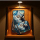 A moose stands by a clear blue stream, surrounded by majestic mountains and forests, with an American flag subtly integrated into the natural scene.
